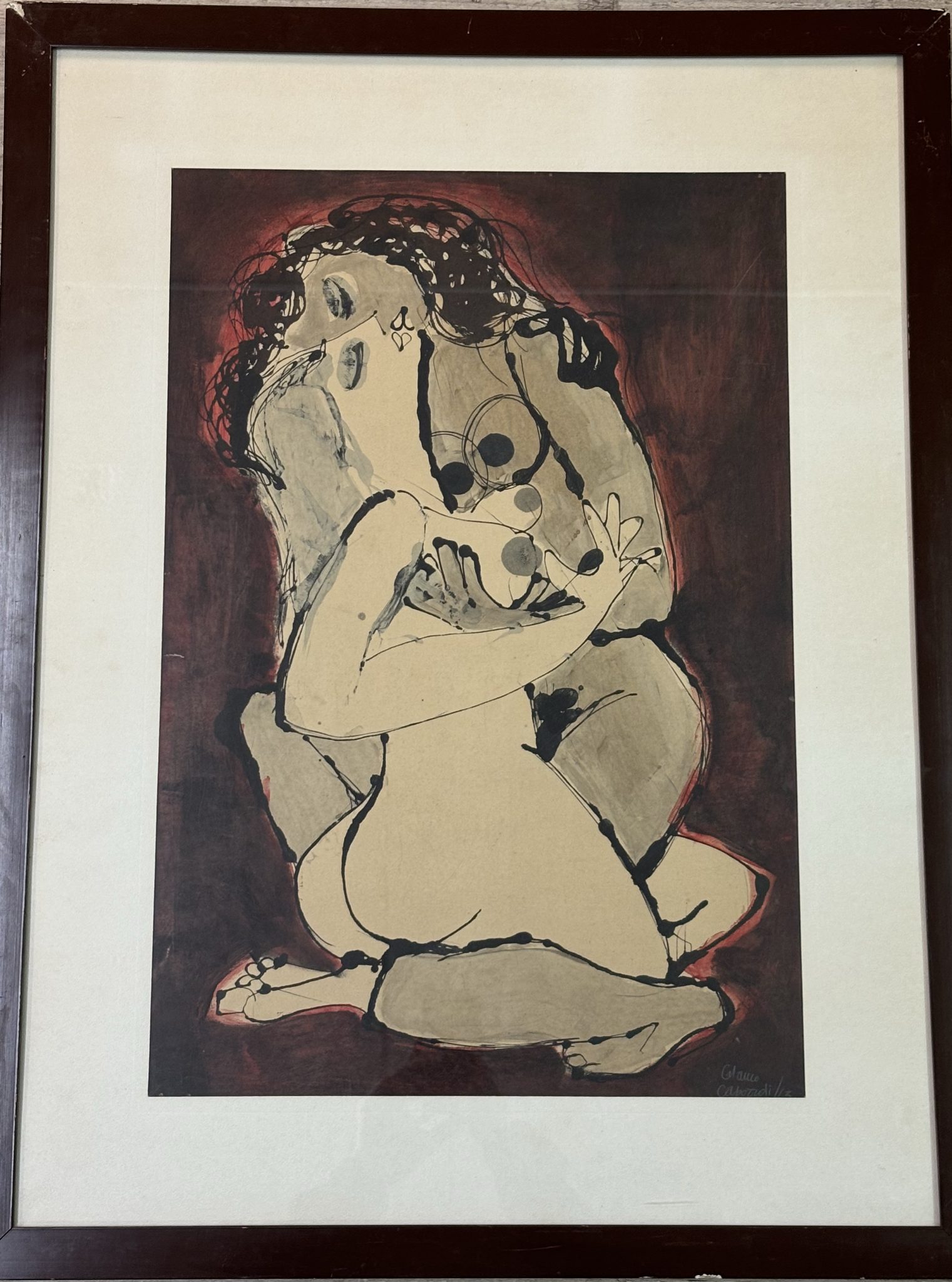 Les deux amies technique mixte sur papier