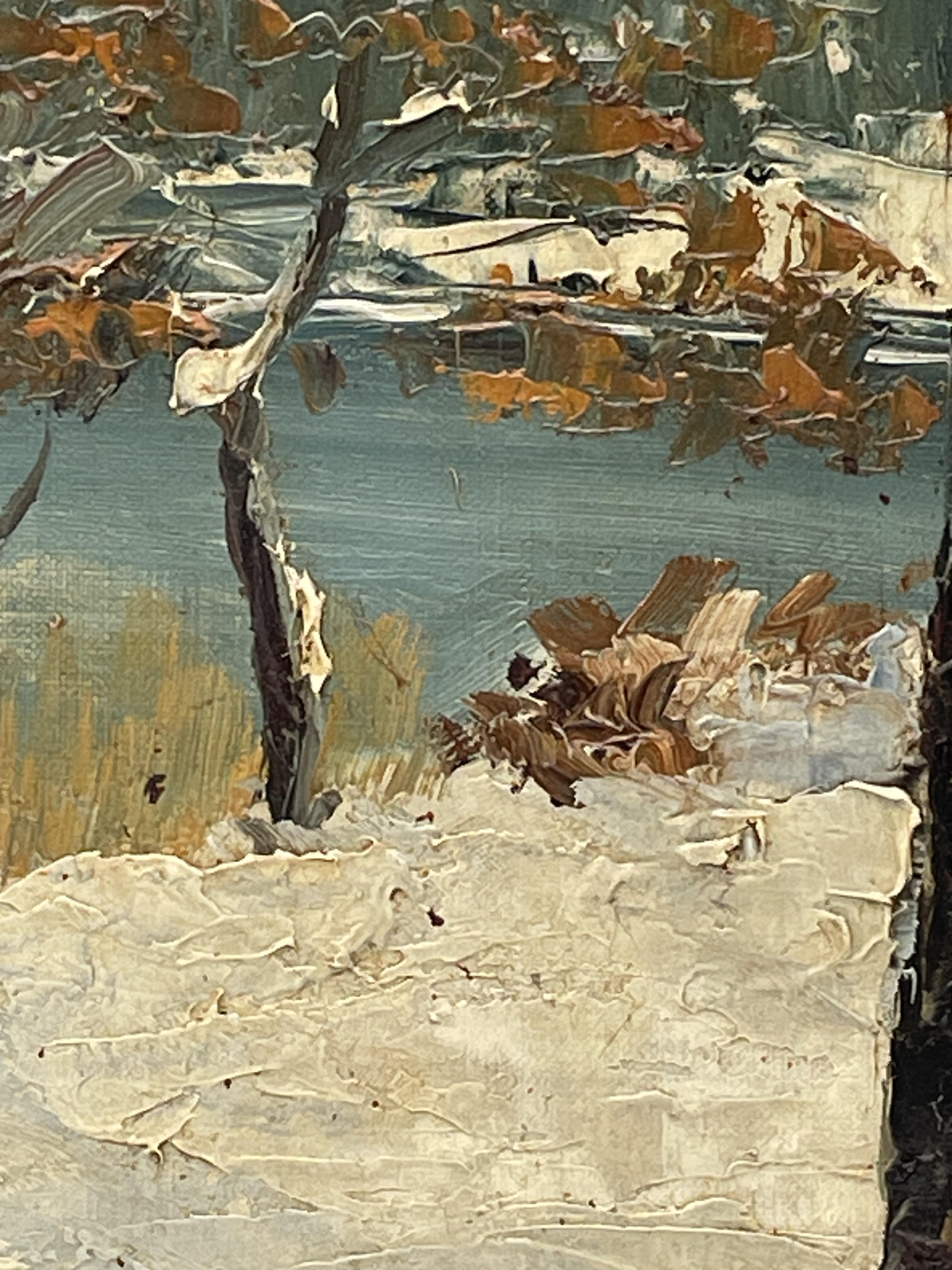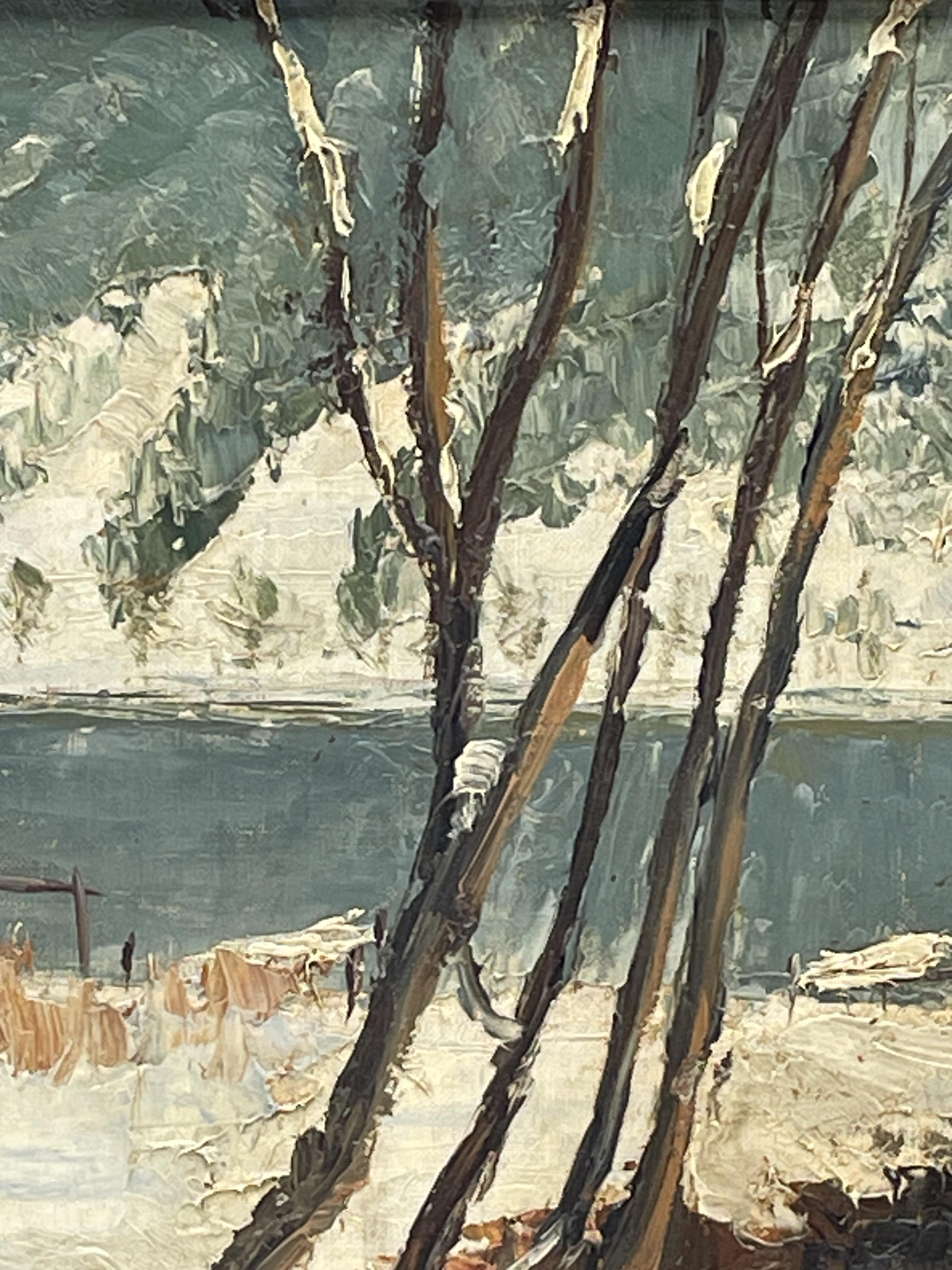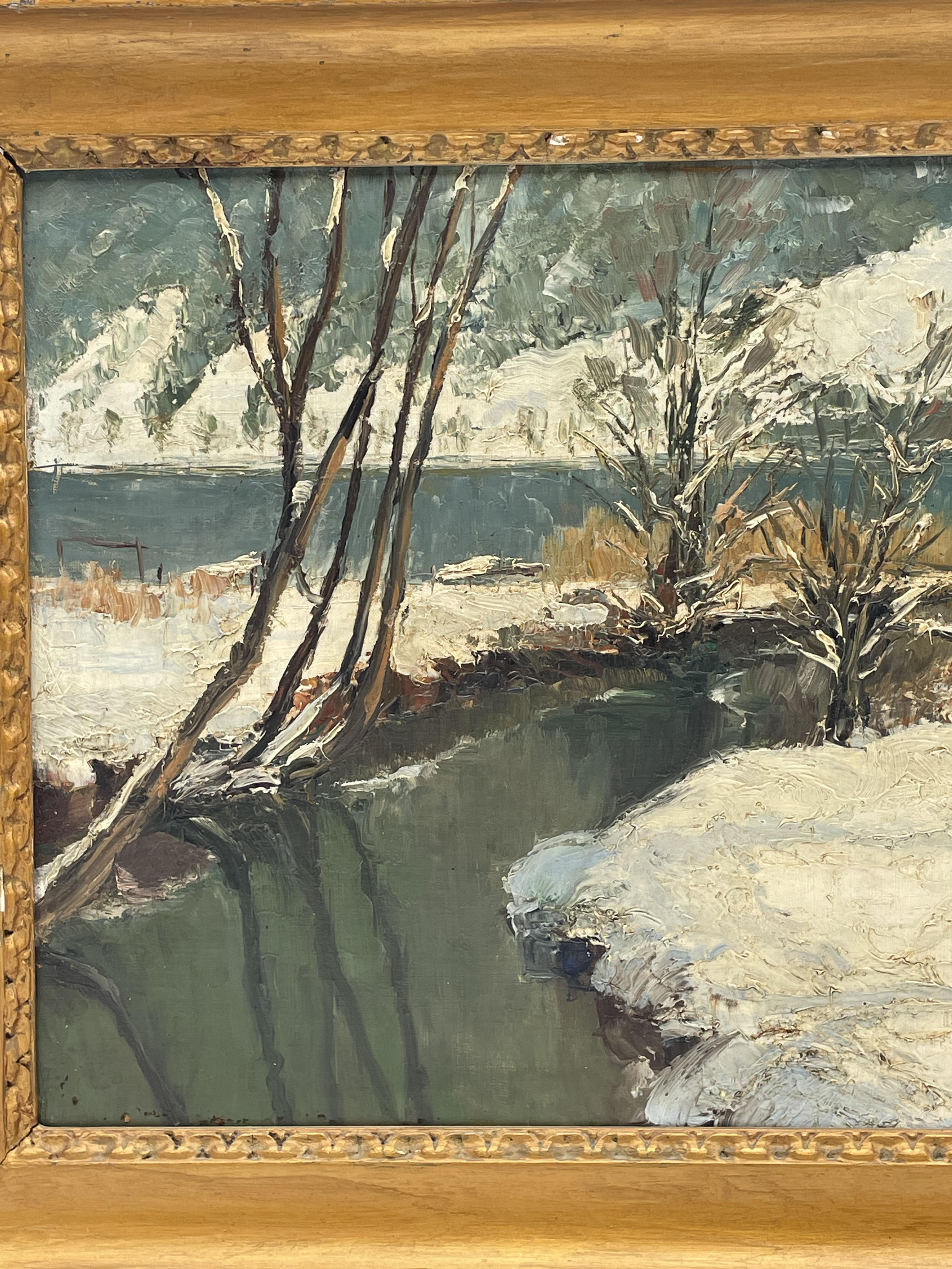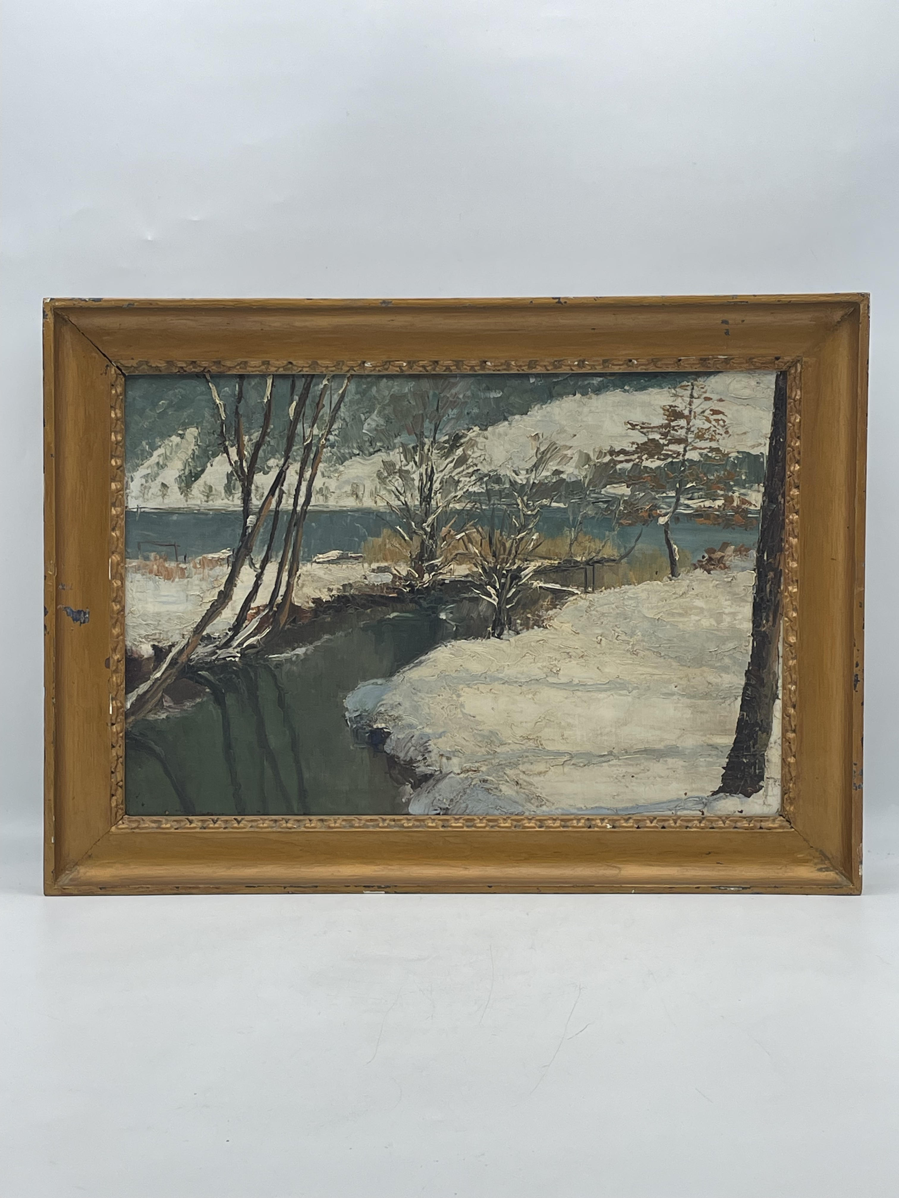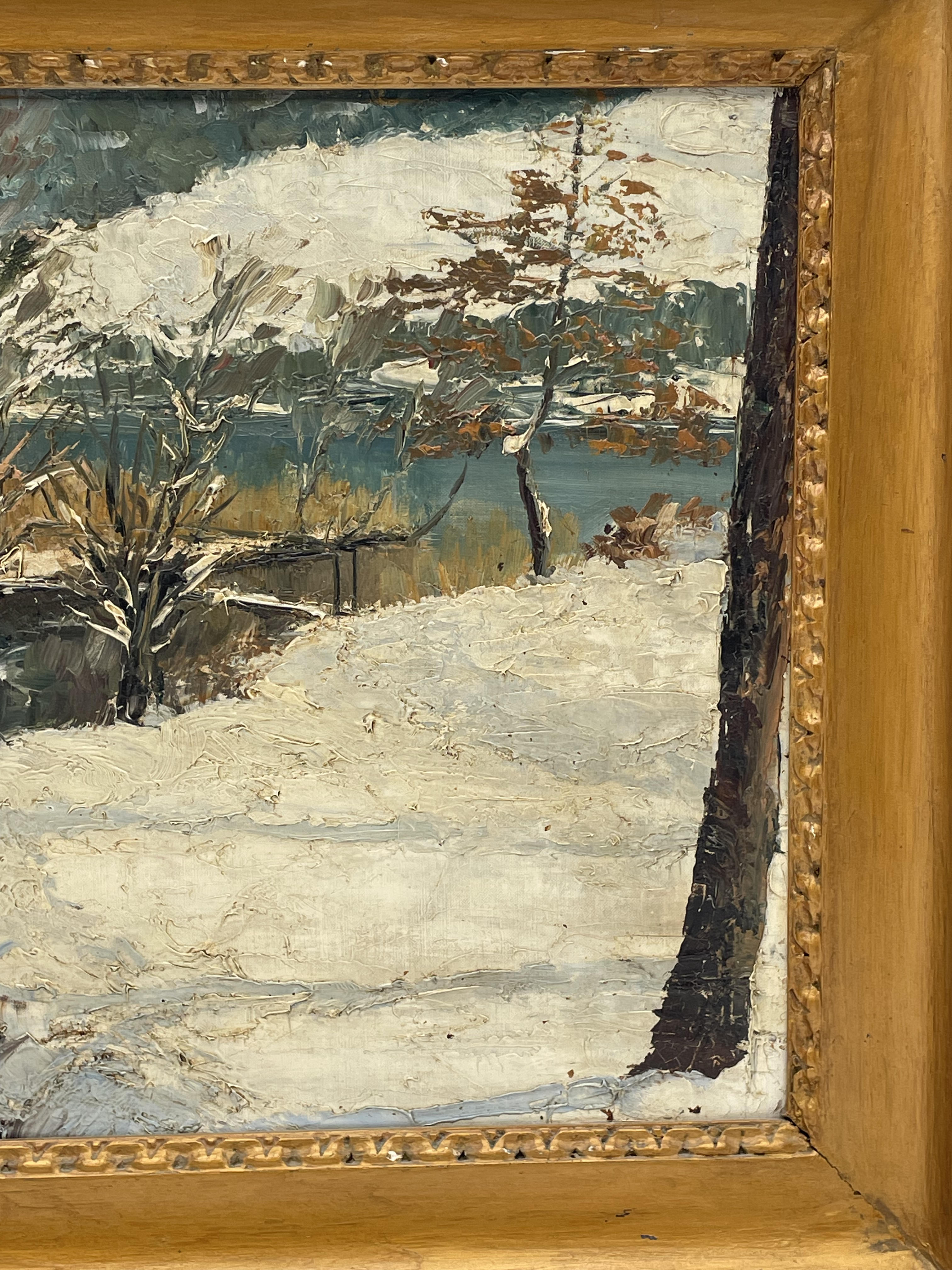 Paysage de montagne huile marouflé panneau