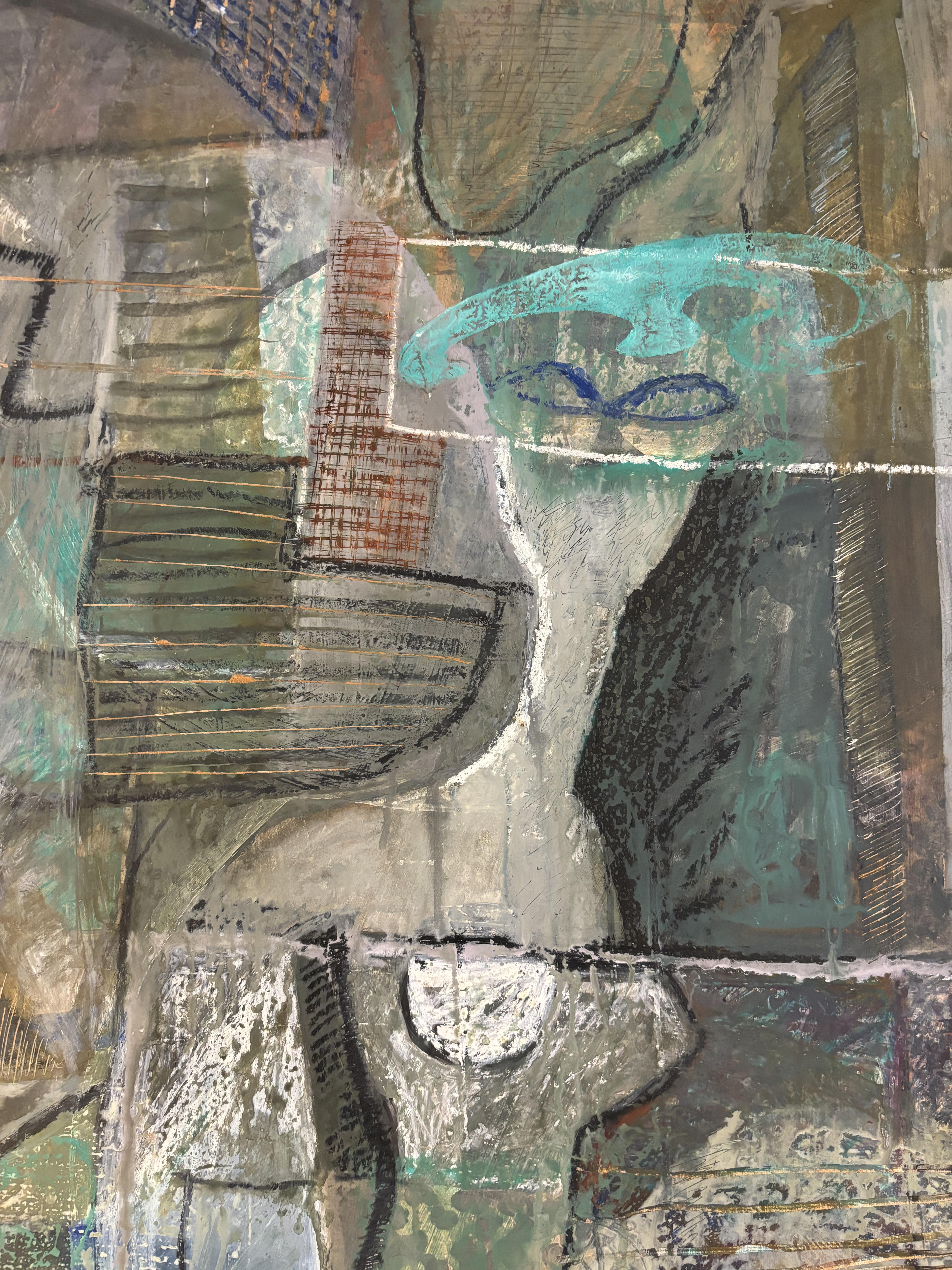 Né en 1947 femmes cubistes dans un intérieur huile sur panneau