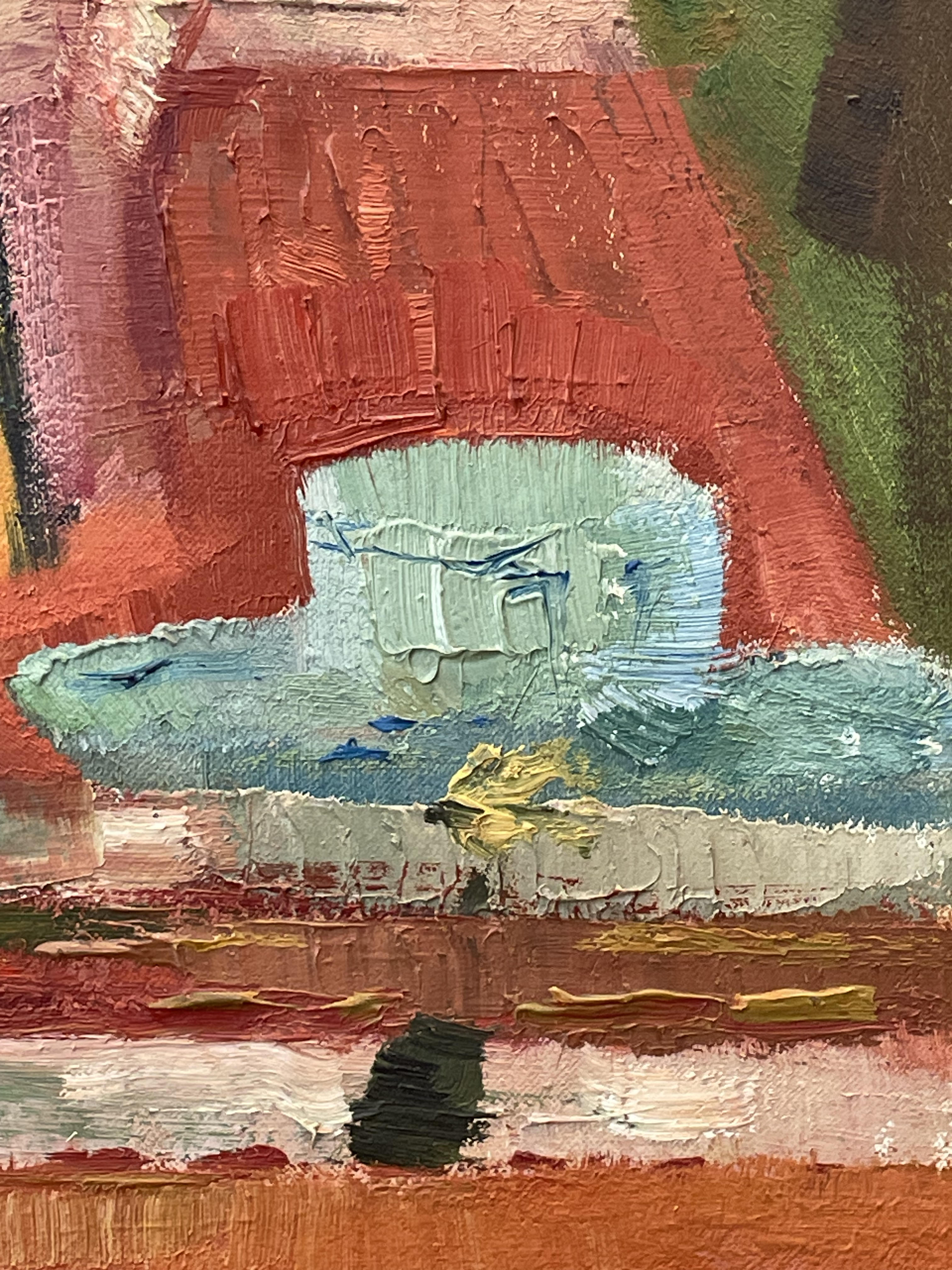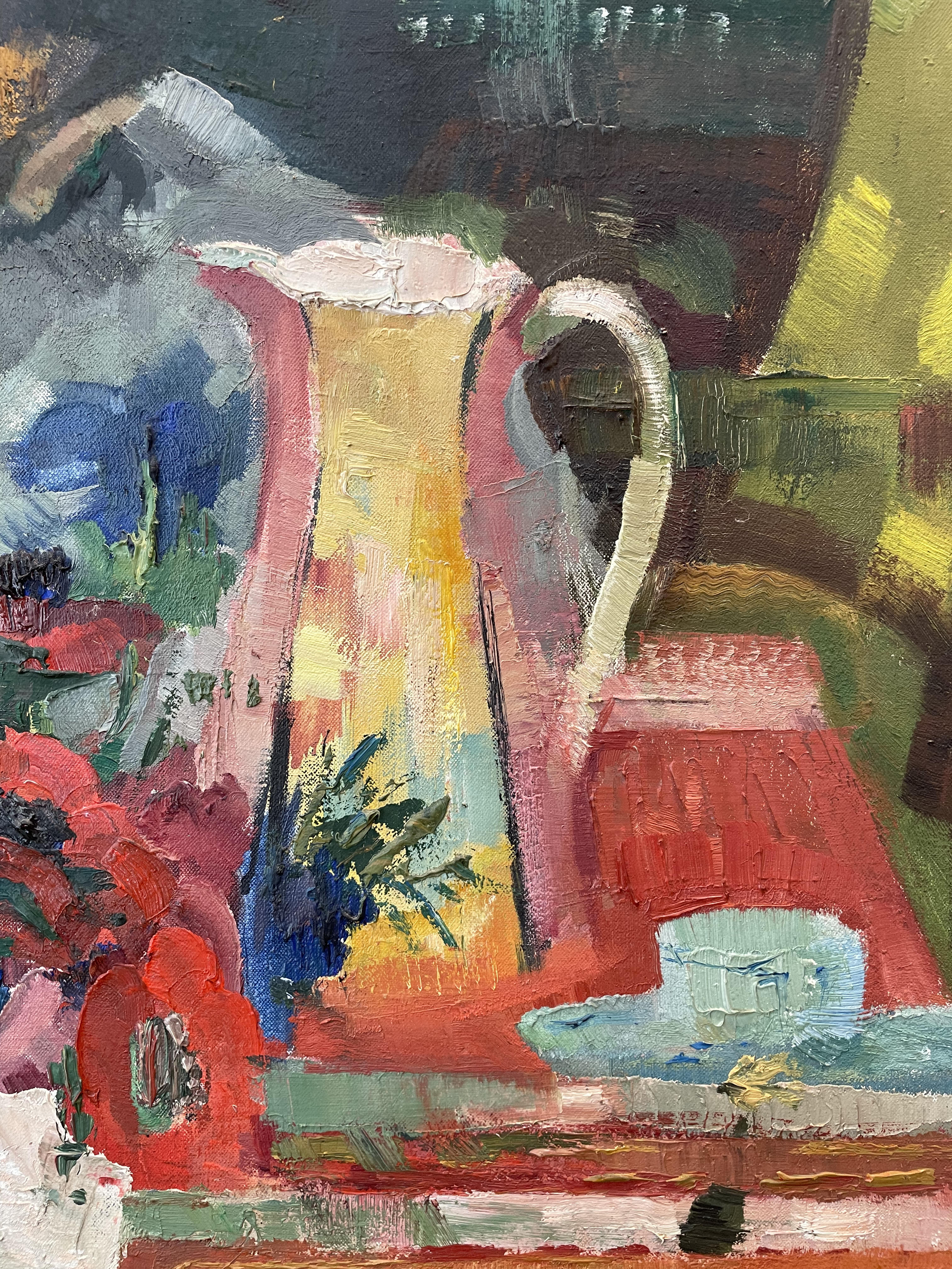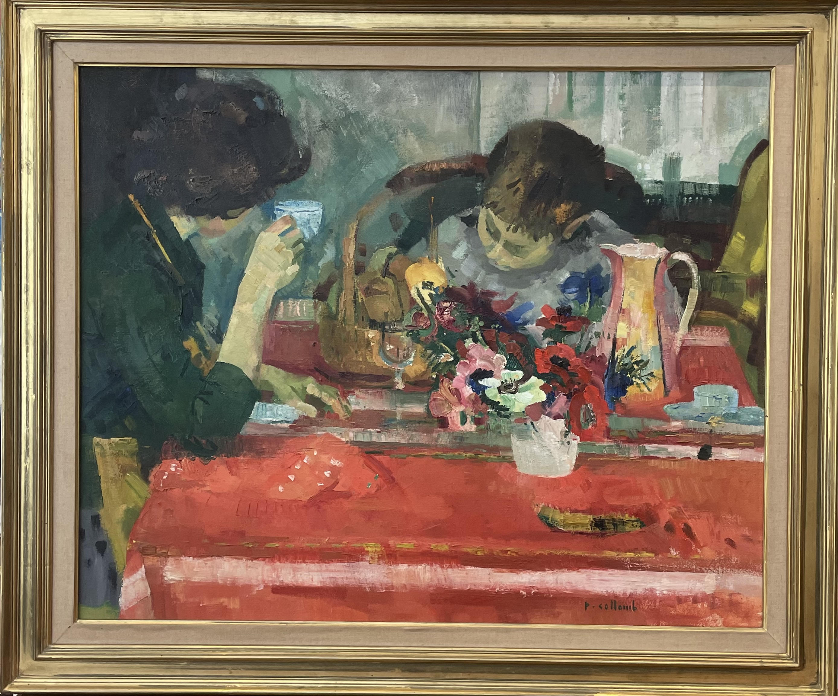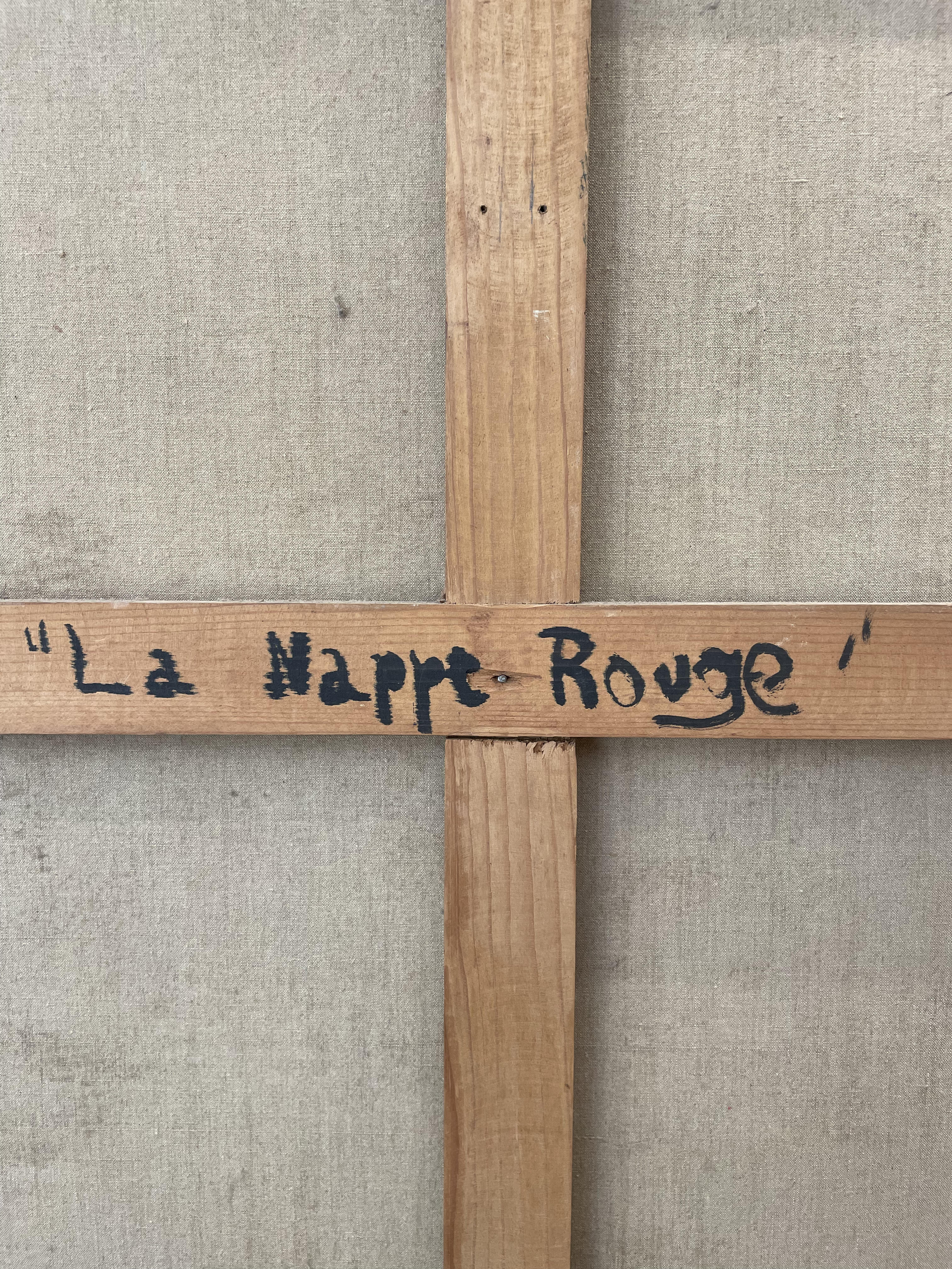 La nappe rouge huile sur toile signée et litrée au dos
